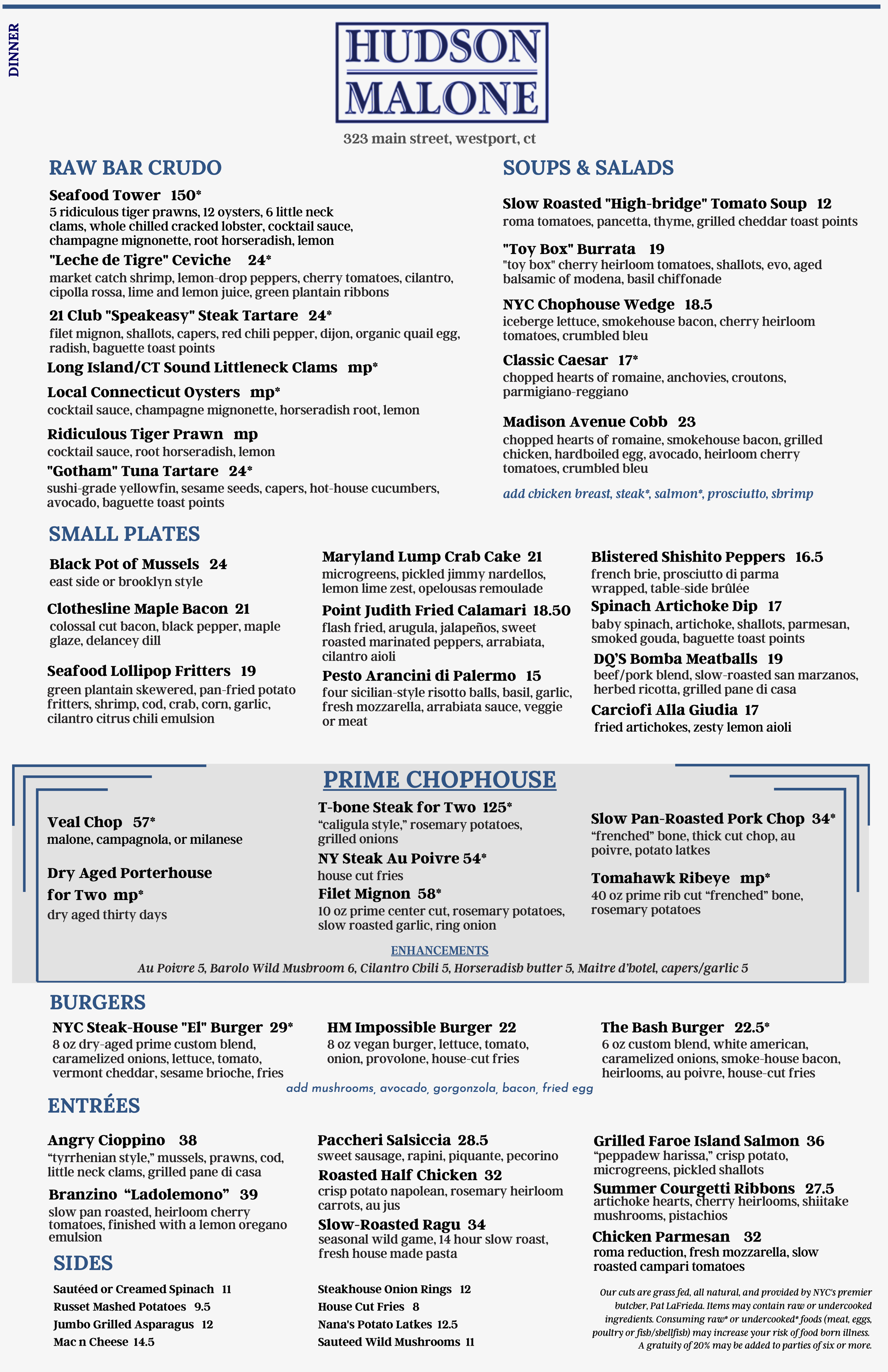 Westport Dinner Menu Dinner View fullsize Make a Reservation Make a Reservation Get Directions Get Directions "Keep moving forward" - Quinn's Laws